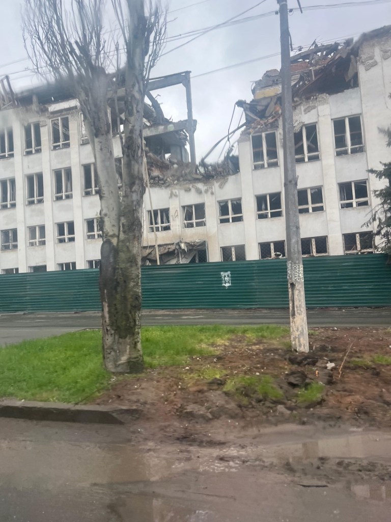 It is under enemy shelling, constantly. Many people have left, but a lot of civilians still live there. Almost all shops are operating, roads are being repaired, flower beds are being planted, everything is being cleaned – in other words, municipal services are still working.